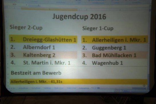 Jugendteams, die nicht nur bei Abschnitts- und Bezirksbewerben, sondern auch bei Landesbewerben Spitzenplätze erreichen wollen und nach Möglichkeit die selektive Qualifikation zur Teilnahme an den nationalen oder sogar internationalen Feuerwehrjugendbewerben anstreben, gönnen sich sozusagen keinen „Winterschlaf“. Da wird auch außerhalb der Bewerbsmonate nahezu durchgehend trainiert. Klar, dass sich die Nachwuchslöschmeister auch in der bewerbsfreien Zeit mit „Gleichgesinnten“ messen und überprüfen wollen. Brandrat Johann Pötscher, Jugendbetreuer Franz Himmelbauer und Kommandant Daniel Schützenhofer haben es ermöglicht, den Jugendteams die Chance eines Leistungsvergleiches außerhalb der Bewerbssaison anzubieten. Wichtige, zeitentscheidende Teile der Hindernisübung und des Staffellaufes wurden so verbunden, dass dies in einer Halle durchführbar ist. 45 Viererteams kämpften rund acht Stunden im KO-System um den Sieg. Am Start waren Gruppen aus ganz Oberösterreich. Dies ist ein Bewerb mit würdigen Siegern und einem großen Lerneffekt für alle die dabei waren. Im Finale der Wertung 2-Cup gewann die Jugendgruppe Dreiegg-Glashütten 1 vor Alberndorf 1, Kaltenberg 2 und St. Martin/Mkr.1. Sieger im 1-Cup wurde Allerheiligen/Mkr.1 vor Guggenberg 1, Bad Mühllacken 1 und Wagenhub 1. Die Bestzeit am Bewerb lieferte die Jugendgruppe Allerheiligen/Mkr. mit 41,31 Sekunden ab.