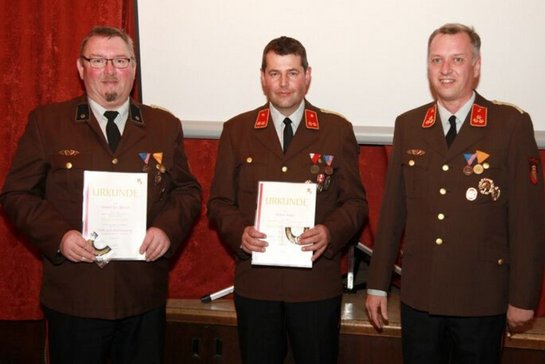 Kommandant Martin Hildner bedankte sich bei den aus dem Kommando ausgeschiedenen Kameraden und ernannte den bisherigen Kommandant-Stellvertreter Robert Stifter zum Ehren-Oberbrandinspektor und den langjährigen Kassenführer Hubert Brandl zum Ehren-Amtswalter. Weitere Informationen und Bilder unter: www.ff-puerstling.at