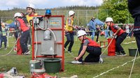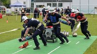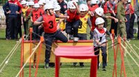 Bei der Feuerwehrjugend wurde bereits am Vormittag gestartet, damit die Teilnahme von 80 Jugendgruppen in den Wertungen Bronze und Silber beim Hindernislauf und dem Staffellauf bewältigt werden konnte.