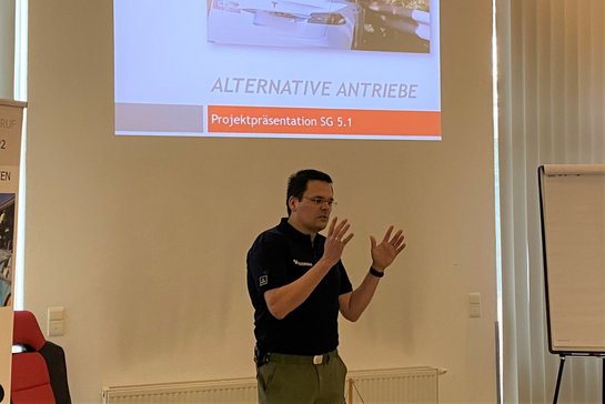 Dipl.Päd. Hubert Springer referierte in einem äußerst interessanten Vortrag über die Ausbildungsunterlage "E20" vom ÖBFV zum Thema "Einsätze mit alternativ angetriebenen Fahrzeugen". Nach einem gemeinsamen Mittagessen folgte noch eine Besprechung der Grundlehrgangs-Ausbilder.