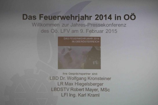 Im Beisein von Landes-Feuerwehrinspektor Ing. Karl Kraml sowie Landesbranddirektor-Stellvertreter Robert Mayer, MSc, präsentierten im Rahmen einer Pressekonferenz Landes-Feuerwehrkommandant Dr. Wolfgang Kronsteiner und Landes-Feuerwehrreferent Landesrat Max Hiegelsberger die Leistungsbilanz des Jahres 2014 der oberösterreichischen Feuerwehren.