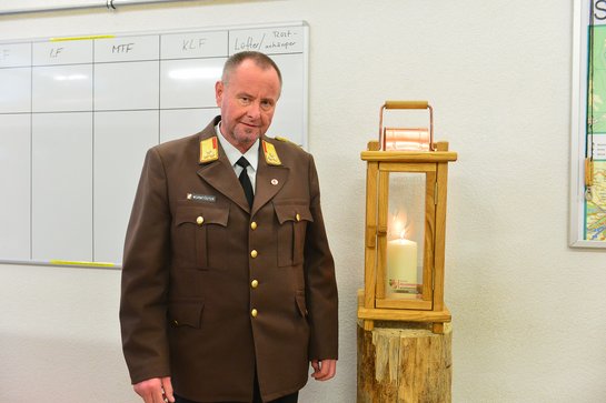 Auf der Fahrt mit dem leuchtenden Symbol des Friedens in Richtung Tschechien machte Bezirks-Feuerwehrkommandant Thomas Wurmtödter noch Halt in Unterweitersdorf und Rainbach/Mkr.
