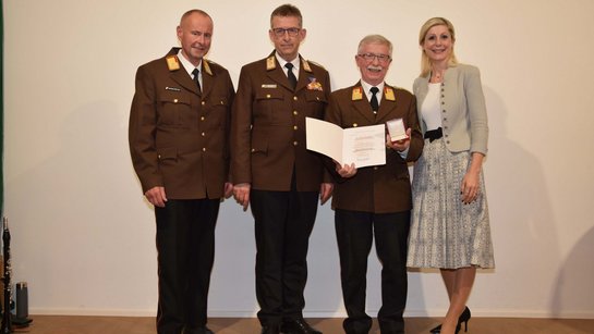 Landesfeuerwehrrat Thomas Wurmtödter konnte Feuerwehrpräsident Robert Mayer begrüßen und ihm die Bezirksverdienstmedaille in Gold überreichen. Viele weitere verdiente Kameraden wurden in diesem feierlichen Rahmen geehrt.