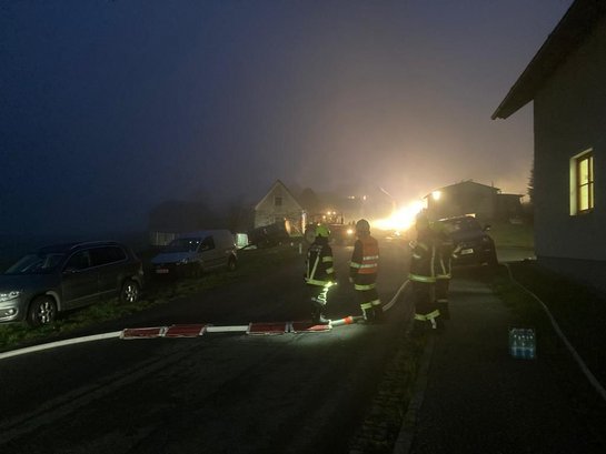Bereits bei der Anfahrt zum Einsatzort war der hellrot erleuchtete Himmel über Liebenstein aufgrund des bereits in Vollbrand stehenden Wirtschaftsgebäudes, welches unmittelbar an das Wohnhaus angebaut war, von Weitem sichtbar. Es wurde sofort die Alarmstufe 2 ausgelöst und somit die Kameraden der Feuerwehren Kaltenberg, Silberberg, Unterweißenbach, Weitersfelden, Wienau und das Atemschutzfahrzeug (ASF) der Feuerwehr Hagenberg nach Liebenstein nachalarmiert.