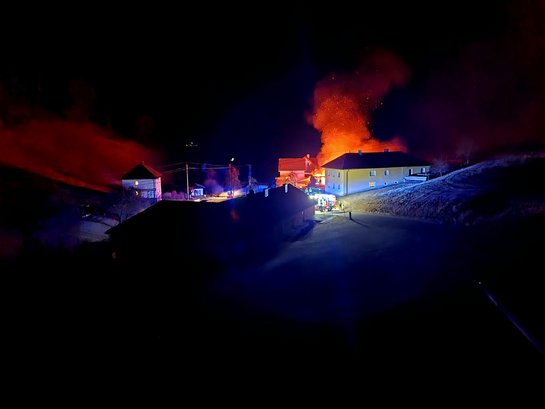 Am 11.03.2022, um ca. 03.40, wurde die Feuerwehr Hirschbach zu einem Brandeinsatz in die Ortschaft Unterhirschgraben alarmiert. Bereits bei der Anfahrt war ein deutlicher Feuerschein zu erkennen.