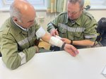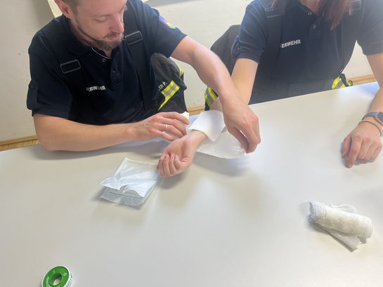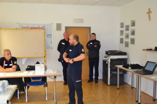 Die Fortbildung umfasste verschiedene praxisnahe Themenbereiche, die das richtige Verhalten im Ernstfall trainierten. Schwerpunkte lagen unter anderem auf der Wiederbelebung mit Defibrillator und Beatmungsbeutel, der Versorgung von Verbrennungen, der Menschenrettung aus einem verunfallten PKW mit Rettungsboa und Spineboard sowie auf der Vorstellung der Höhenretter. Die Teilnehmer konnten dabei ihr Wissen auffrischen, neue Techniken erlernen und den Umgang mit medizinischen Geräten unter realistischen Bedingungen üben.