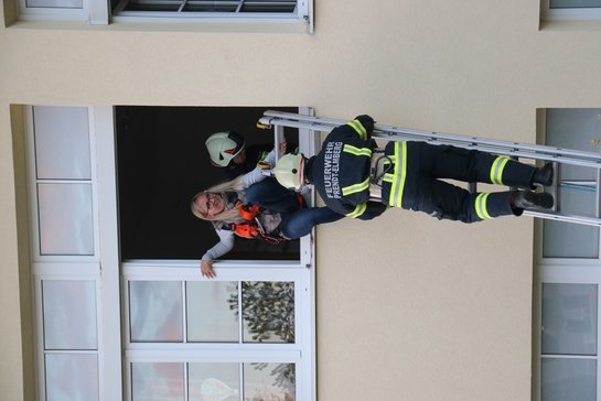 Es war ein Brand der in der Schule ausbrach, aufs Dach übergriff, den Gang verrauchte und eine Klasse samt Lehrerin einschloss. Zudem verirrten sich 3 Schüler bei der Flucht und brachen bewusstlos zusammen. Für die Schüler, gespielt von Mitgliedern unserer Jugendgruppe war es eine spannende und aufregende Sache einmal so hautnah bei der Übung dabei zu sein und über Leitern abzusteigen.