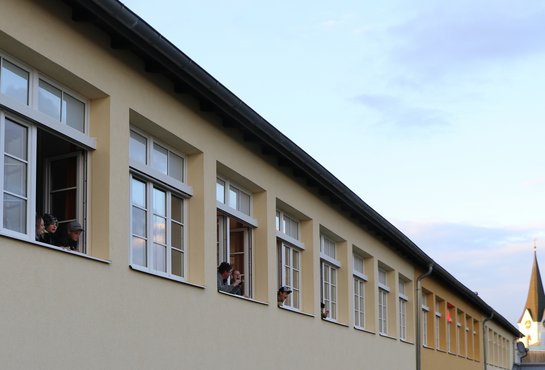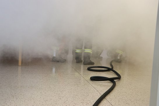 Über Leitern und durch AS-Trupps im Innenangriff wurden nämlich die Schüler gerettet. Die Flammen wurden durch einen umfassenden Außenangriff mit 4 B-Rohren bekämpft. Beides wurde rasch und effizient durchgeführt.