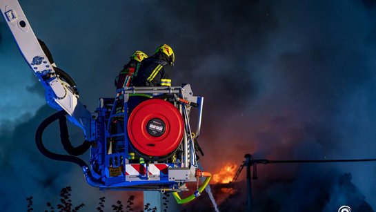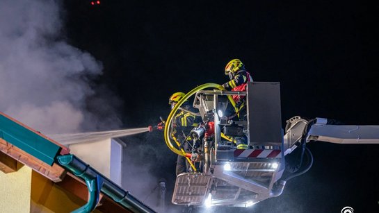 Mehrere Atemschutztrupps führten einen Innenangriff durch und im Außenbereich wurde ein umfassender Löschangriff durchgeführt. Mit zwei Hubrettungsfahrzeugen konnte der Dachstuhlbrand unter Kontrolle gebracht werden.