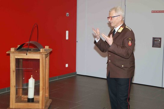 Dort wurde nach einigen besinnlichen Worten von Landesbranddirektor Dr. Wolfgang Kronsteiner das Friedenslicht in der großen Laterne im Eingangsbereich entzündet. Dabei waren auch Kameraden aus Deutschland, Landesbranddirektor-Stellvertreter Robert Mayer, Bezirks-Feuerwehrkommandant Wolfgang Mayr, Brandrat Helmut Knoll sowie Bezirks-Feuerwehrkommandant Franz Seitz mit Sophie, Katrin und Luisa aus Windhaag/Fr.