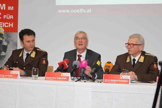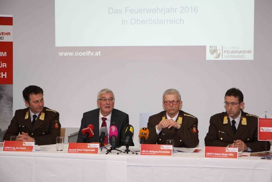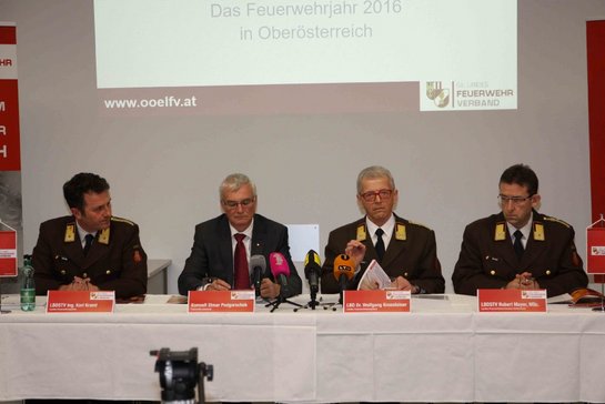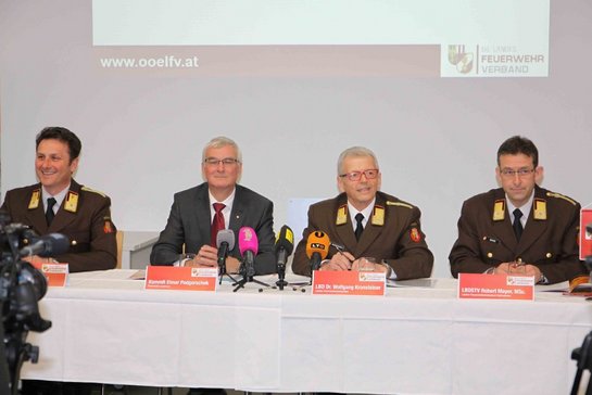Bilanz über das vergangene Einsatzjahr gezogen hat der Oö. Landes-Feuerwehrverband im Rahmen einer Pressekonferenz im Landes-Feuerwehrkommando. Feuerwehr-Landesrat KR Elmar Podgorschek, Landes-Feuerwehrkommandant Dr. Wolfgang Kronsteiner, sein Stellvertreter Robert Mayer, MSc und Landes-Feuerwehrinspektor Ing. Karl Kraml standen als Gesprächspartner zur Verfügung.