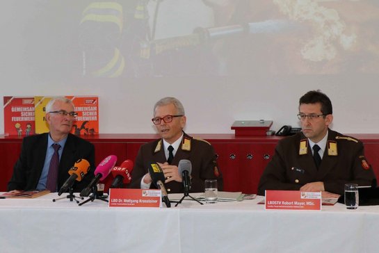 Eine beeindruckende Leistungsbilanz der oberösterreichischen Feuerwehren über das Einsatzjahr 2017 präsentierte Landes-Feuerwehrkommandant Dr. Wolfgang Kronsteiner im Beisein von Feuerwehr-Landesrat KR Elmar Podgorschek und Landesbranddirektor-Stellvertreter Robert Mayer, MSc bei der Jahres-Pressekonferenz im Oö. Landes-Feuerwehrkommando.