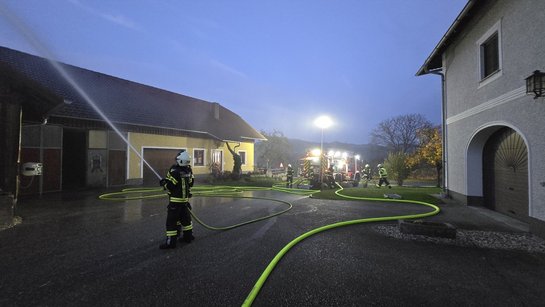 Als Übungsszenario wurde ein Großbrand Landwirtschaftliches Objekt in Miesenberg gewählt.