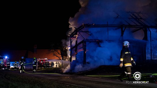 Durch das ASF Hagenberg wurden die Atemschutztrupps gleich wieder versorgt und auch der Atemschutzsammelplatz gemeinsam mit der FF Bad Zell eingerichtet. Nach den Löscharbeiten wurde mittels Bagger die Reste des Stadels abgetragen. Zum Abschluss wurde nochmals mit der Wärmebildkamera kontrolliert und um 01:30 Uhr konnte der Einsatz beendet werden.