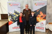 Foto 2: Kommandant Hildner mit Selina & Sophia Hobbiger und Martin Näher