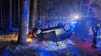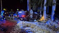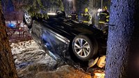 Der verunfallte Wagen war über einen Wasserdurchlauf in Richtung eines Waldweges katapultiert worden, überschlug sich dabei und landete am Dach.