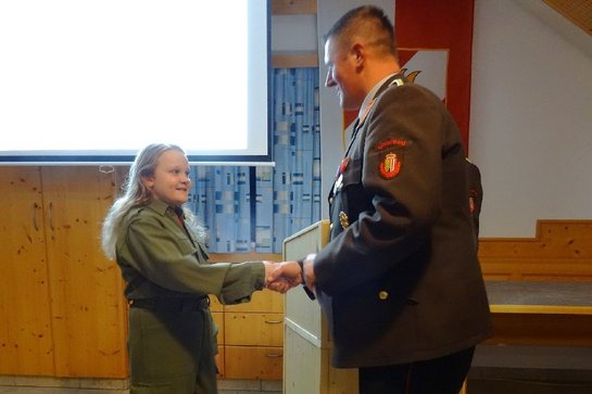 Jungfeuerwehrmitglied Johanna König konnte nach einem Jahr Mitgliedschaft angelobt werden.