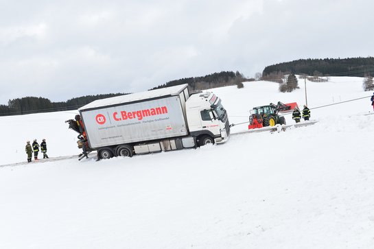 Zu einer LKW Bergung wurde die Feuerwehr Zulissen und Bad Leonfelden am Montag gegen 13:00 Uhr alarmiert.