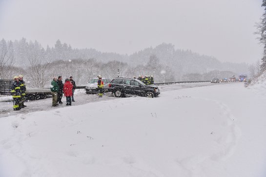 Ein Pkw-Lenker verlor in einer Rechtskurve kurz nach der Kreuzung “Siegelsdorf” aufgrund der schlechten Fahrbahnverhältnisse die Kontrolle über sein Fahrzeug, dass anschließend auf die Gegenfahrbahn geriet und mit einem entgegenkommenden Auto kollidierte. Im entgegenkommenden Fahrzeug befanden sich laut erste Informationen zufolge mehrere Personen die bei dem Aufprall verletzt, zum Teil schwer verletzt wurden. Die Feuerwehr Lasberg führte die Reinigungsarbeiten an der Unfallstelle durch.