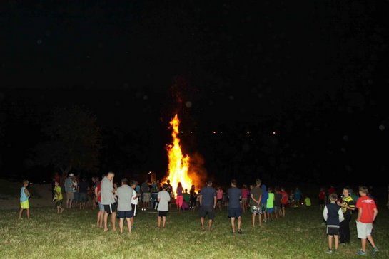 "Paintball ist eine sportliche Freizeitaktivität und hat keinen politischen oder kriegerischen Inhalt", so Franz Duschlbauer jun. Der Firmeninhaber stellte auch seine Räumlichkeiten zur Nutzung für Jugendcampzwecke, wie das Lagerbüro, zur Verfügung. Nachdem dann der Abend hereingebrochen war, entzündete Brandrat Bruno Duschlbauer, assistiert von seinem Bruder und Hausherrn des Elmeckerhofes, Franz, das Lagerfeuer im Jugendcamp 2015.