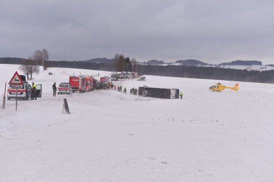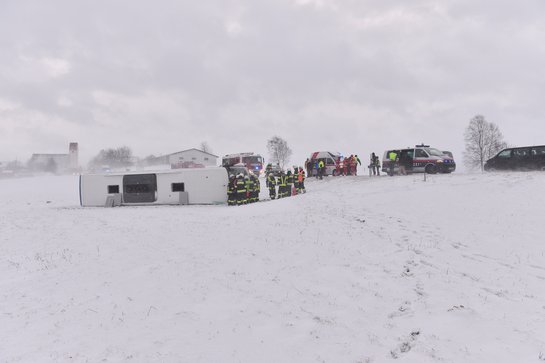 Ein Linienbus war gegen 15 Uhr vermutlich aufgrund einer Windböe von der Straße abgekommen und in den Straßengraben gestürzt. Im Bus befanden sich 13 Fahrgäste und der Lenker. Bei dem Unfall wurden drei Personen schwer und sieben leicht verletzt. Die Leichtverletzten wurden auf das Landeskrankenhaus Freistadt und das Unfallkrankenhaus Linz aufgeteilt. Ein Schwerverletzter wurde mit dem Notarzthubschrauber ins Unfallkrankenhaus geflogen, der zweite ins LKH Freistadt gebracht. Die Feuerwehr Rainbach und Summerau leisteten dem Roten Kreuz hilfe bei der Befreiung der Touristen aus dem Bus. Ein Bergeunternehmen barg schließlich den Linienbus und brachte ihn auf die Straße. Nach zirka vier Stunden konnte die B310 wieder für den Verkehr freigegeben werden.