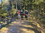Die Frau war auf einer Wanderung am Buchberg zum bekannten Hoh-Haus unterwegs, als sie am Wanderweg aufgrund einer Eisplatte zu Sturz kam. Dabei zog sie sich eine Verletzung am Fuß zu, die ein eigenständiges Absteigen unmöglich machte. Die Frau wählte per Mobiltelefon den Notruf und setzte somit die Rettungskette in Gang. Das Rote Kreuz alarmierte sofort zur Unterstützung die Freiwillige Feuerwehr Lasberg. Aufgrund der exponierten Lage im Wald und des steilen Geländes wurde zudem ein Notarzthubschrauber angefordert.
