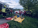 Glück im Unglück: Mehrere Feuerwehrkameraden befanden sich zum Zeitpunkt des Unfalls aufgrund einer Schulung im Feuerwehrhaus und wurden durch die Unfallgeräusche aufmerksam. Sie rückten unverzüglich aus und trafen binnen weniger Minuten am Einsatzort ein.