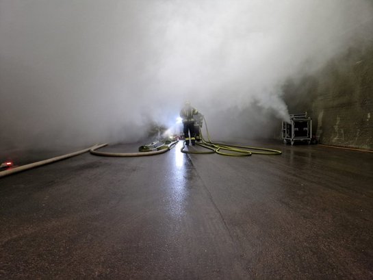 Dabei wurden die bereits erlernten Abläufe verbessert und vertieft. Geübt wurde das Löschen eines PKWs und LKWs in der mit Gas befeuerten Anlage sowie das Suchen und Retten von Personen im Tunnel. Ein besonderes Augenmerk lag an der Einsatzführung des Gruppenkommandanten und der Verbesserung der Einsatztaktik.
