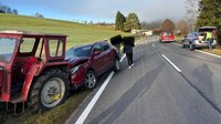 Nach dem Eintreffen am Einsatzort konnte vom Einsatzleiter festgestellt werden, das ein PKW auf einem Traktor aufgefahren war.