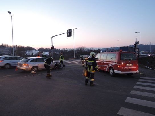Zwei PKWs kollidierten auf der Kreuzung B124 – Hagenberger Gemeindestraße im Abendverkehr. Ein demoliertes Fahrzeug blieb dabei fahruntüchtig im Kreuzungsbereich liegen. Die Absicherung der Unfallstelle bei starkem Verkehrsaufkommen war die erste Tätigkeit der Einsatzkräfte. In weiterer Folge wurden ausgelaufene Flüssigkeiten gebunden und die Fahrbahn nach der Entfernung des Unfallfahrzeuges gereinigt. Die beiden Fahrzeuglenker blieben beim dem Unfall unverletzt. Die Feuerwehr Hagenberg stand mit zwölf Mitglieder und zwei Fahrzeugen im Einsatz. Mehr Infos: www.feuerwehr-hagenberg.at