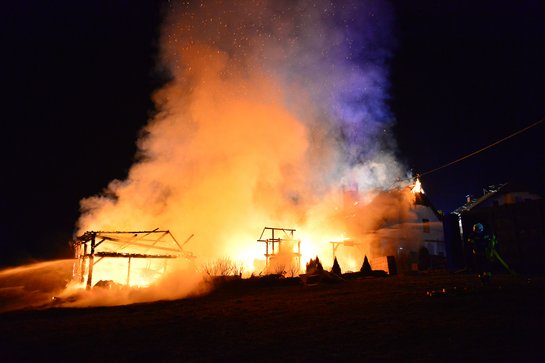 Elf Feuerwehren mussten in der Nacht zum Donnerstag nach Sandl im Bezirk Freistadt ausrücken. Ein Bauernhaus stand in Vollbrand.