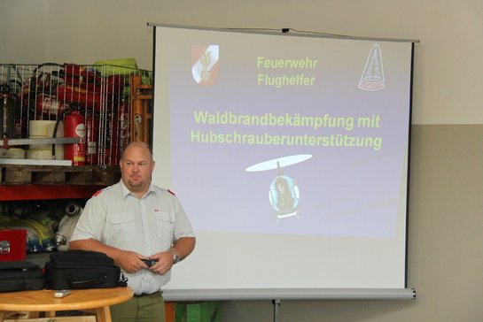 Die Einsatzkräfte wurden durch fachkundige Kameraden, darunter der Stützpunktleiter der Freiwilligen Feuerwehr St. Agatha (Bezirk Gmunden), Hauptbrandinspektor Markus Kogler mit seinem Flughelfer sowie von Stützpunktleiter Brandmeister Alfred Pfleger aus Rohrbach und seinem Flughelfer, durch die Übung geführt. Das Thema Waldbrandbekämpfung mit Hubschrauberunterstützung hat man beim Rosenhoferteich in Sandl im Stationsbetrieb praktisch beübt. Die Kameraden der Pflichtbereichsfeuerwehren Gugu-Schönberg, Pürstling und Sandl sowie die freiwilligen Helfer der Nachbarfeuerwehren Rauchenödt, Spörbichl, Unterwald und Windhaag/Fr. hat man bei den Stationen Packen der Netze für den Transportflug, Brandbekämpfung mit speziellem Gerät und Wasserbeförderung mit Hubschrauberunterstützung geschult. Als Übungsbeobachter anwesend waren Ehren-Brandrat Ing. Albert Hofmann, Brandrat Thomas Wurmtödter und der Hauptamtswalter für Ausbildung Helmut Friesenecker. Die Firma Nowak sorgte für die notwendige „Hubschrauberunterstützung“.
