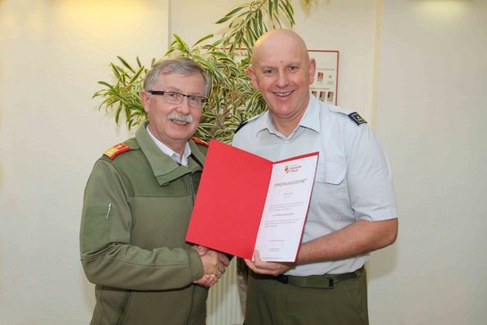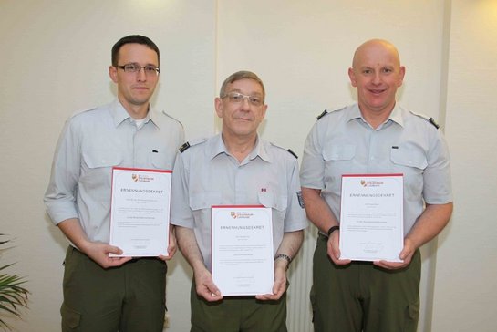 Mit Beschluss der Oö. Landes-Feuerwehrleitung wurden der bisherige Landesbewerbsleiter-Stellvertreter Oberamtswalter Gerhard Filla (FF Wels) zum neuen Landesbewerbsleiter sowie Oberamtswalter DI Hannes Passenbrunner (Bezirk Steyr Land) und Hauptamtwalter Martin Riepl (Bezirk Freistadt) zu seinen Stellvertretern bestellt. Nach dem Lehrgang für Lehrgangsleiter „Funklehrgang“ in der Oö. Landes-Feuerwehrschule überreichte Landes-Feuerwehrkommandant Dr. Wolfgang Kronsteiner die Ernennungsdekrete. Dem langjährigen, sehr erfolgreichen und umsichtigen Landesbewerbsleiter Anton Ramskogler wurde für sein verdienstvolles Wirken die „Große Florian-Ehrenmedaille in Bronze“ überreicht. Landesbranddirektor Wolfgang Kronsteiner, Landesbranddirektor-Stellvertreter Robert Mayer und der Leiter der Oö. Landes-Feuerwehrschule Oberbrandrat Ing. Hubert Schaumberger dankten Kamerad Ramskogler für seine großartige Arbeit im Dienste der Feuerwehr.