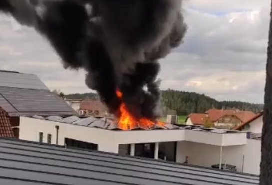 Bei Eintreffen konnte festgestellt werden, dass der Brand im Bereich des Daches und der darauf befindlichen Photovoltaikanlage ausgebrochen war. Da auch die darunter befindliche Dämmung und der Dachstuhl bereits betroffen waren, entstand eine weithin sichtbare schwarze Rauchwolke.