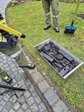 Nach gemeinsamer Kontrolle, wurde das Brandgut aus dem Ofen entfernt und ins Freie gebracht, wo es anschließend abgelöscht wurde.